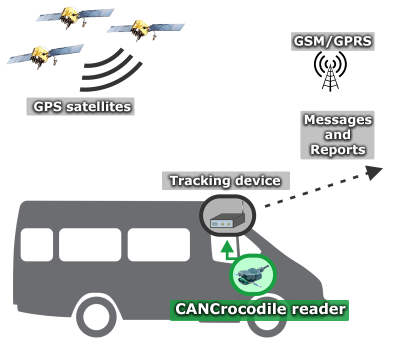 - Data collection from standard vehicle sensors: fuel consumption, fuel level, operation time and etc. (see the specifications of J1939 and J1708).