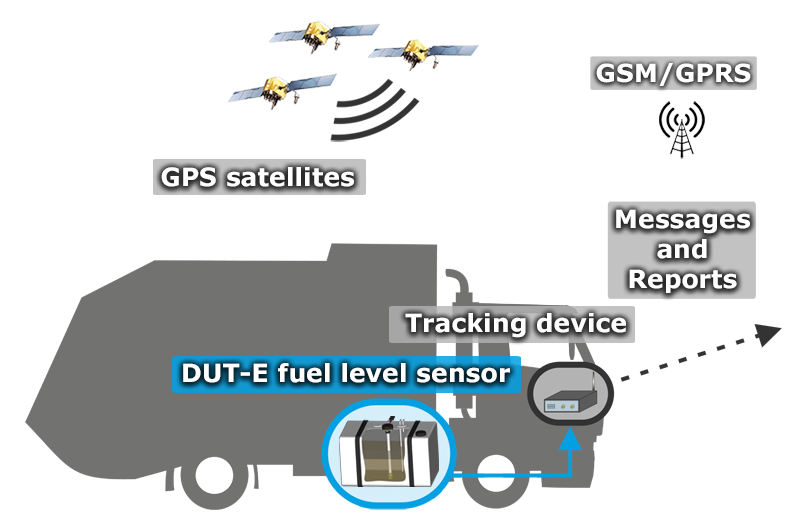 DUT-E fuel level sensor shows the exact amount of fuel in the tank, monitors fuel consumption and detects fuel theft.